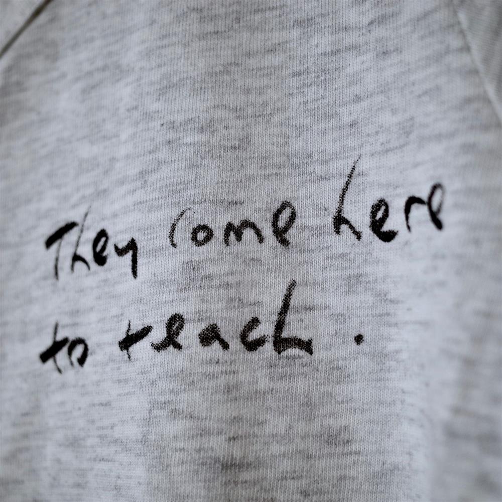 Cardigan tee . w snaps & pocket (Text on tee: They Come Here To Teach)