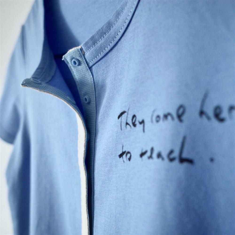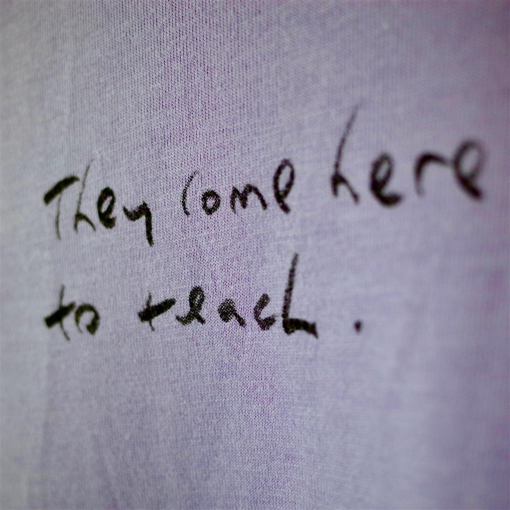 Cardigan tee . w snaps (Text on tee: They come here to teach)